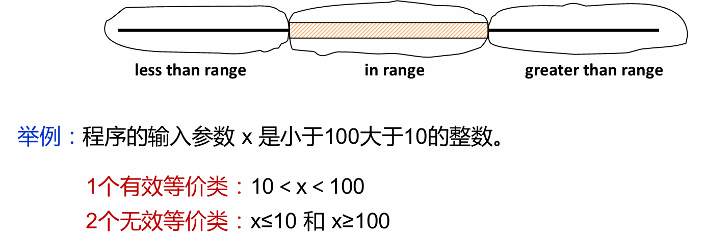 取值范围: 在输入条件规定了取值范围的情况下,可以确定一个有效等价类和两个无效等价类。