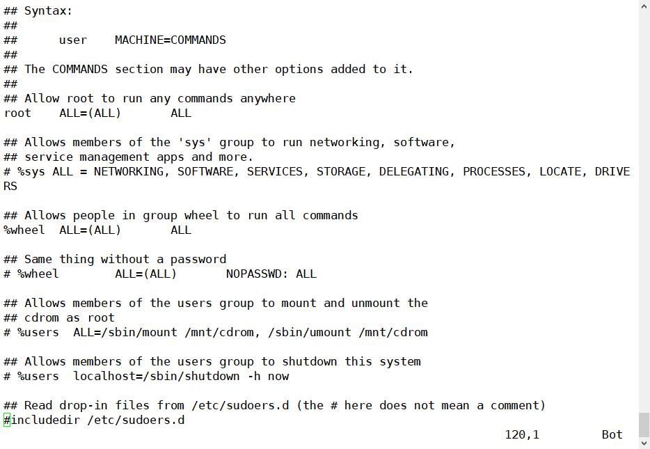 具体配置类型如下:(通过visudo 命令可以看全部)