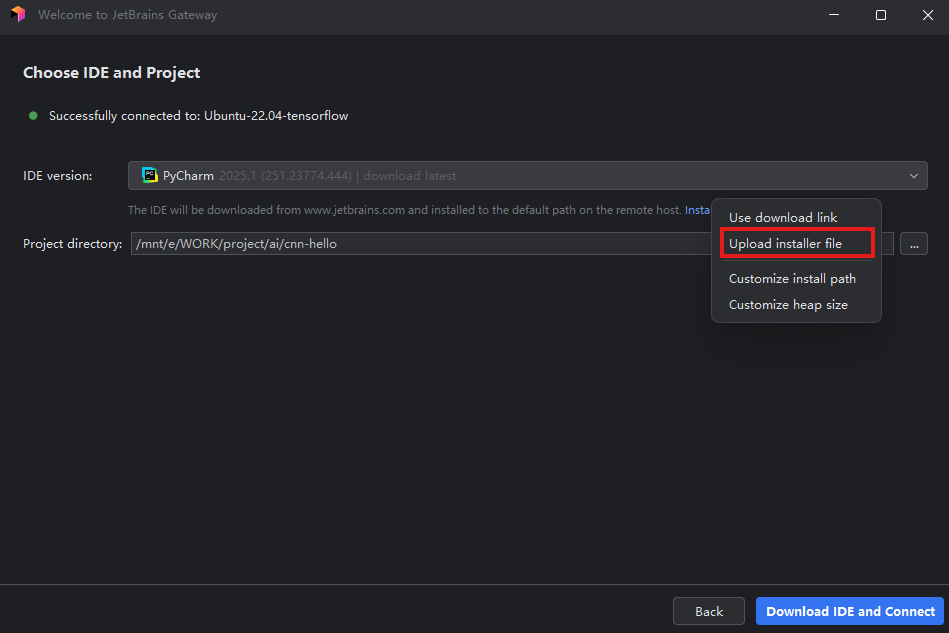 WSL-Ubuntu上安装IDE成功后,如下所示,可点击蓝色项目路径进入项目