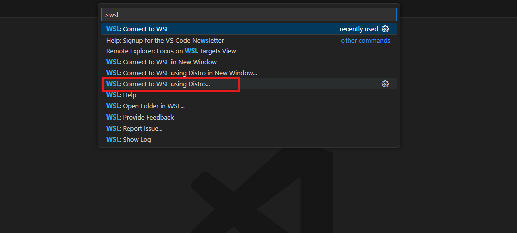 然后选择执行WSL:Connect to WSL using Distro...