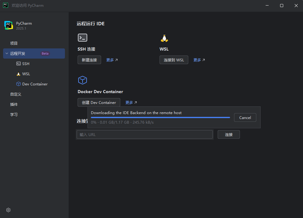 打开Pycharm 2025.1,可以看到远程开发下有个WSL,选择它新建项目。