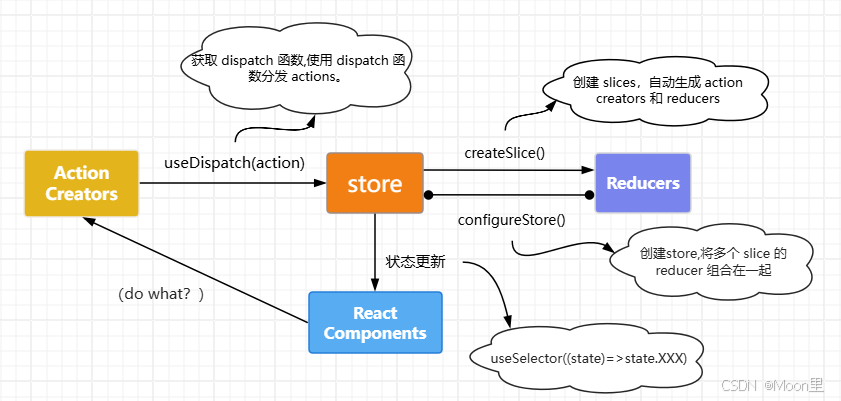 createAsyncThunk: 该函数有两个参数,一个字符串,用作生成的action types的前缀;一个payload creator回调函数,应该返回一个Promise。这通常使用async/await语法编写,因为async函数会自动返回一个Promise。createAsyncThunk函数生成一个 pending/fulfilled/rejected 基于该Promise分派动作类型的thunk。默认redux不能在reducers中处理异步,而在外部处理或者使用自带的一个方法createAsyncThunk;createAsyncThunk可以被认为是一个action,只不过它是异步的。进而正常通过dispatch派发即可;但是提到异步,就免不了有状态产生(pending/fulfilled/rejected),所以结果并不能被reducers正常归纳处理