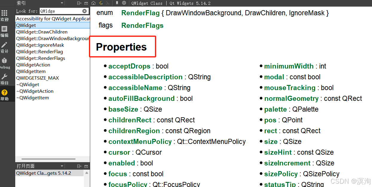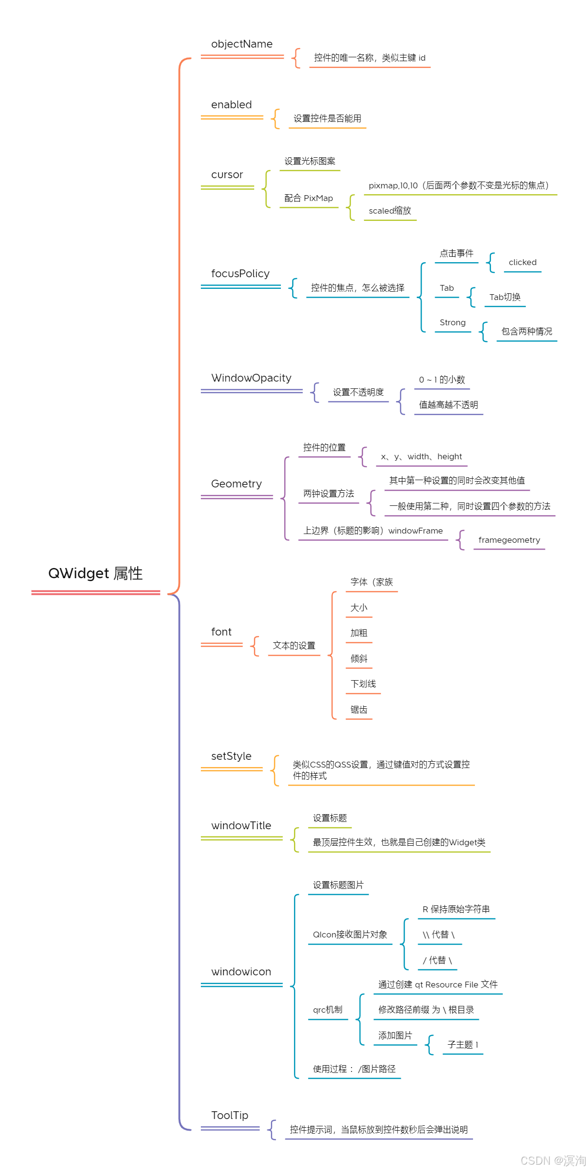其中知道的是:会有很多控件都会继承于QWidget,该控件就能使用父类QWidget中的属性,这样通过了解QWidget中的属性就也能控制器子类控件,所以我们了解QWidget是非常有必要的。