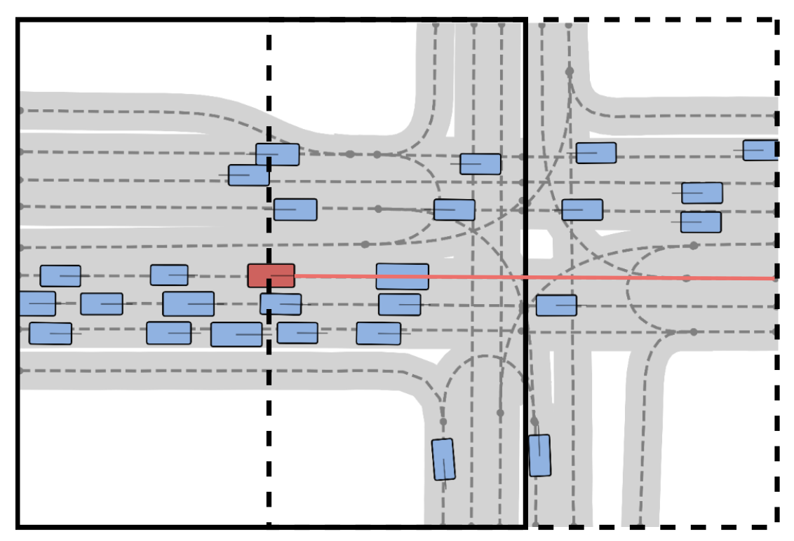 行为模拟给定初始场景生成器规定的初始场景配置,行为模拟任务包括对场景中动态目标随时间的行为进行建模。具体而言,给定初始物体边框状态集合 S_0 := O 和车道结构 M,行为模型采用多智体驾驶策略 π(A_t|S_t, M) 和前向转移模型 P (S_t+1 |S_t , A_t),其中 A_t 是时间步 t 所有动态目标动作的集合。