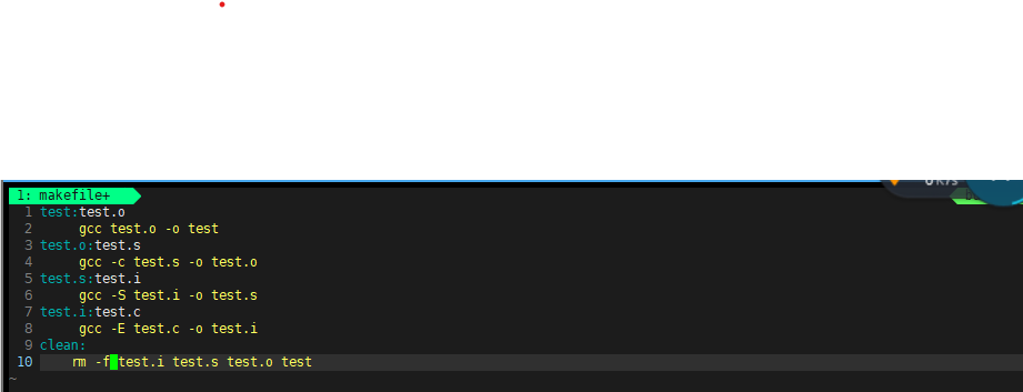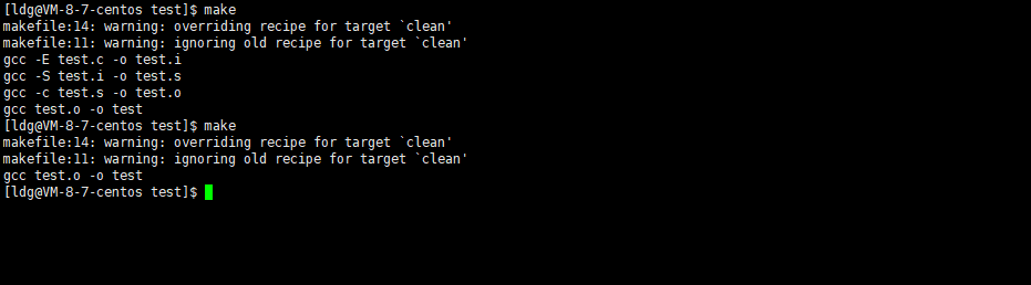 i这里定义了从test.c 文件逐步生成可执行文件test的过程,每一步都明确了依赖关系和编译命令。