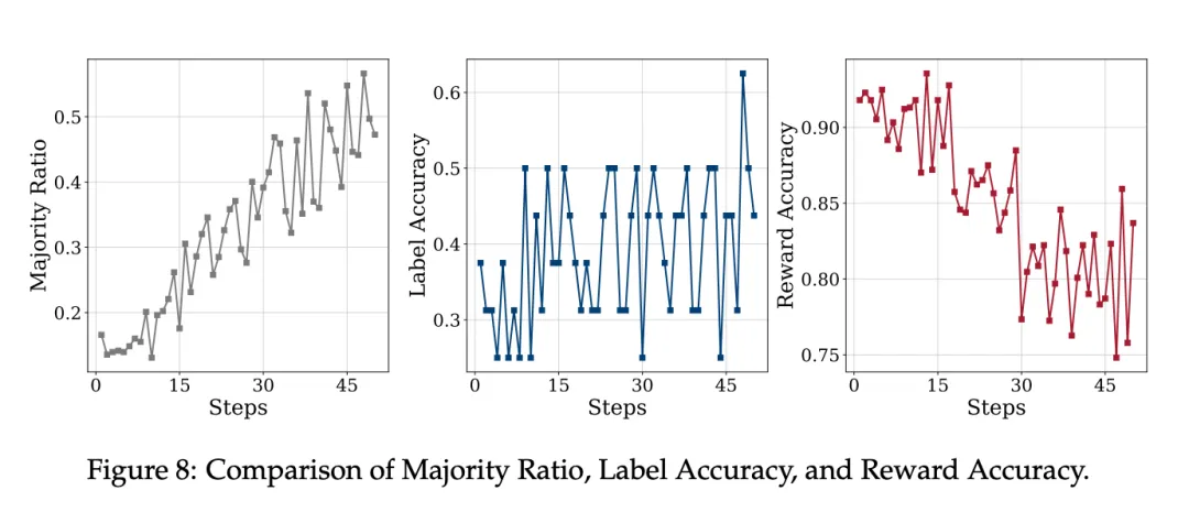 随后,该多数投票结果 y 被用作标签估计,用于计算基于规则的奖励信号: