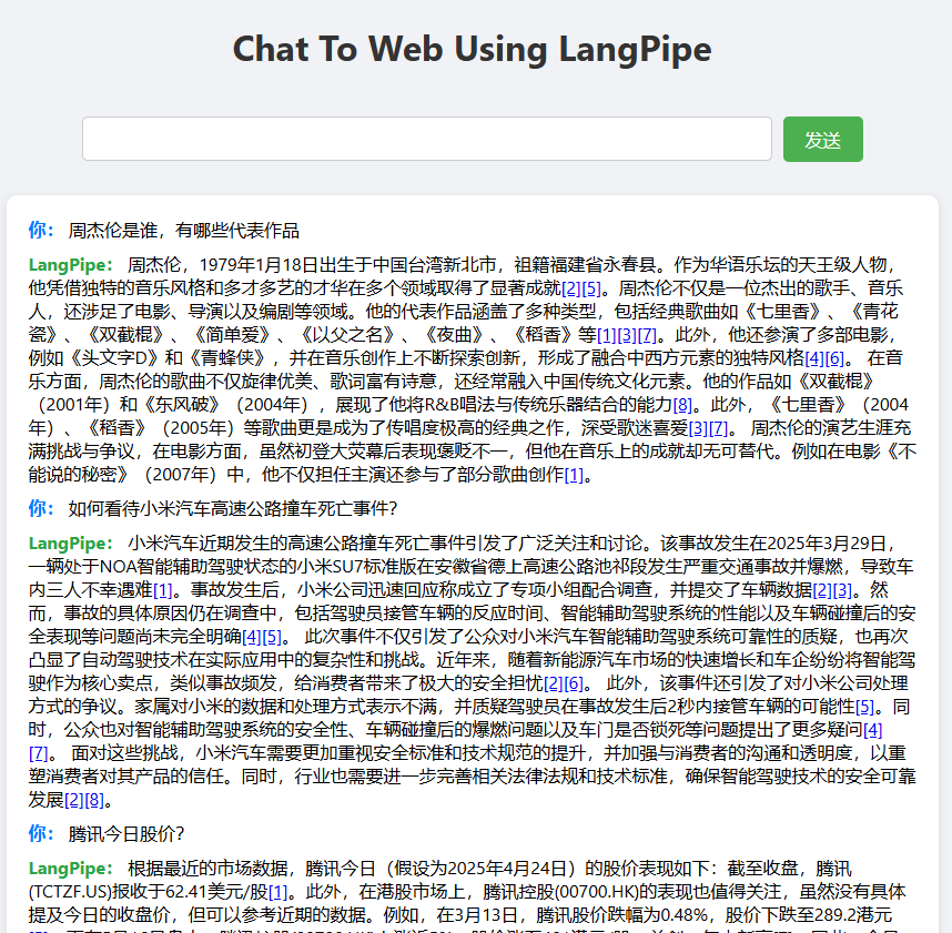 chat to web using LangPipe from browser.