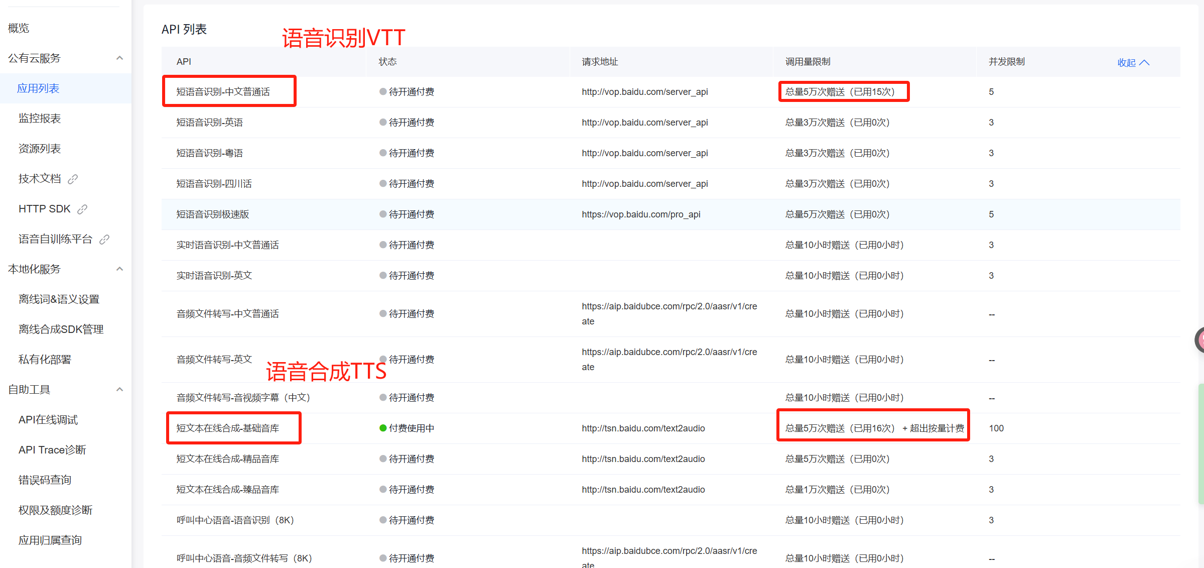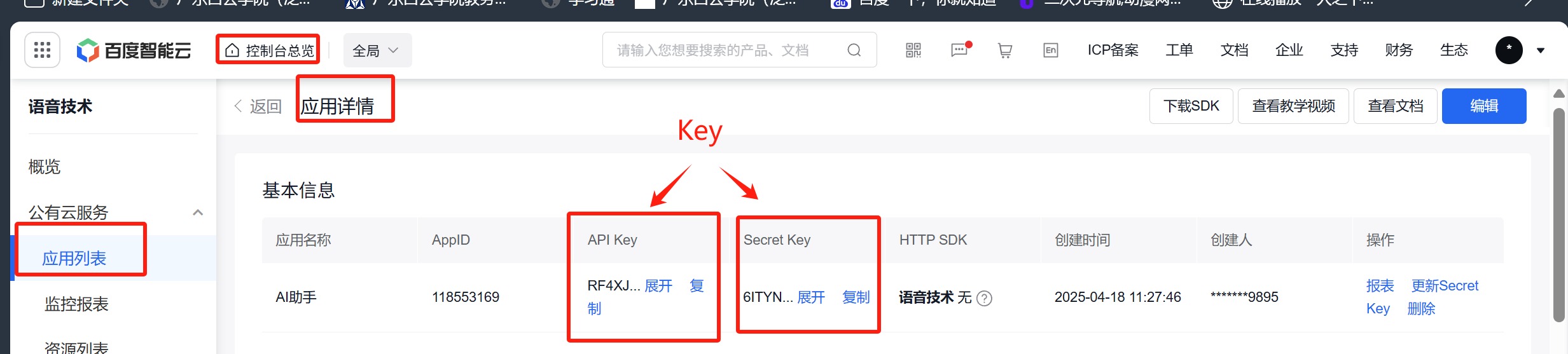 在百度智能云平台开通语音合成 和语音识别 服务,并绑定到应用中