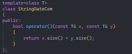 此时我们自己写一个仿函数,来选择比较的方式,就可以做到按照长度进行排序。