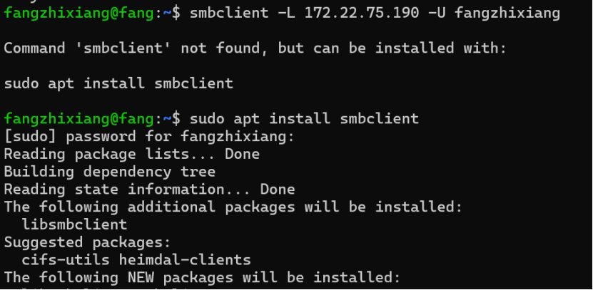 smbclient -L 172.22.75.190 -U fangzhixiang