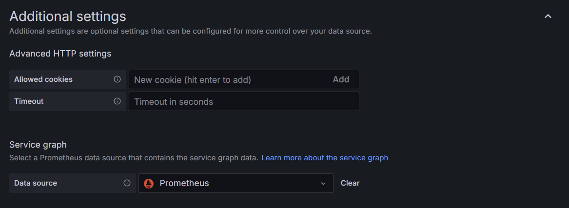 - Span end time shift: 1h /用于Tempo中通过TraceID查询loki日志用,结束时间前移1小时
