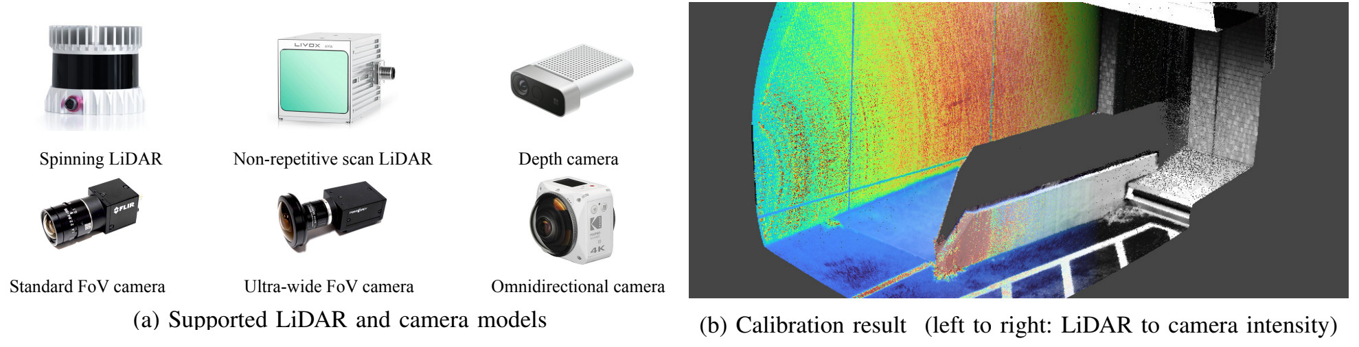 - 该软件包提供了一种通用的激光雷达与相机的标定工具,可以处理各种激光雷达和相机的投影模型。标定过程中不需要标定目标,依赖于环境结构和纹理进行标定。