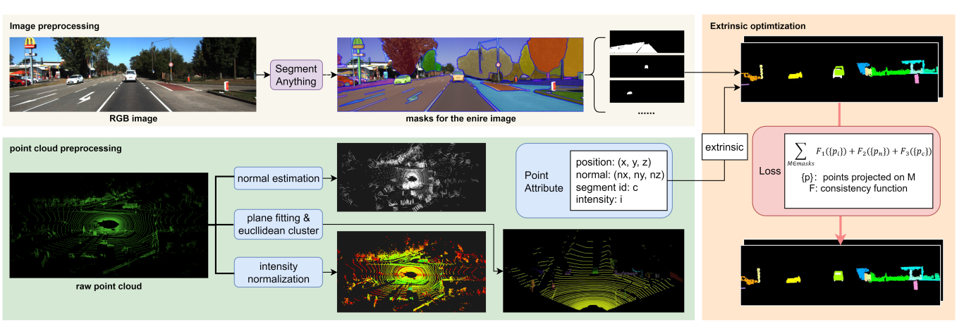 CalibAnything 算法是应用pcl分割点云,sam分割图像,通过匹配物体间重合获取最终外参,算法感知结果应用到标定前端的结合应用