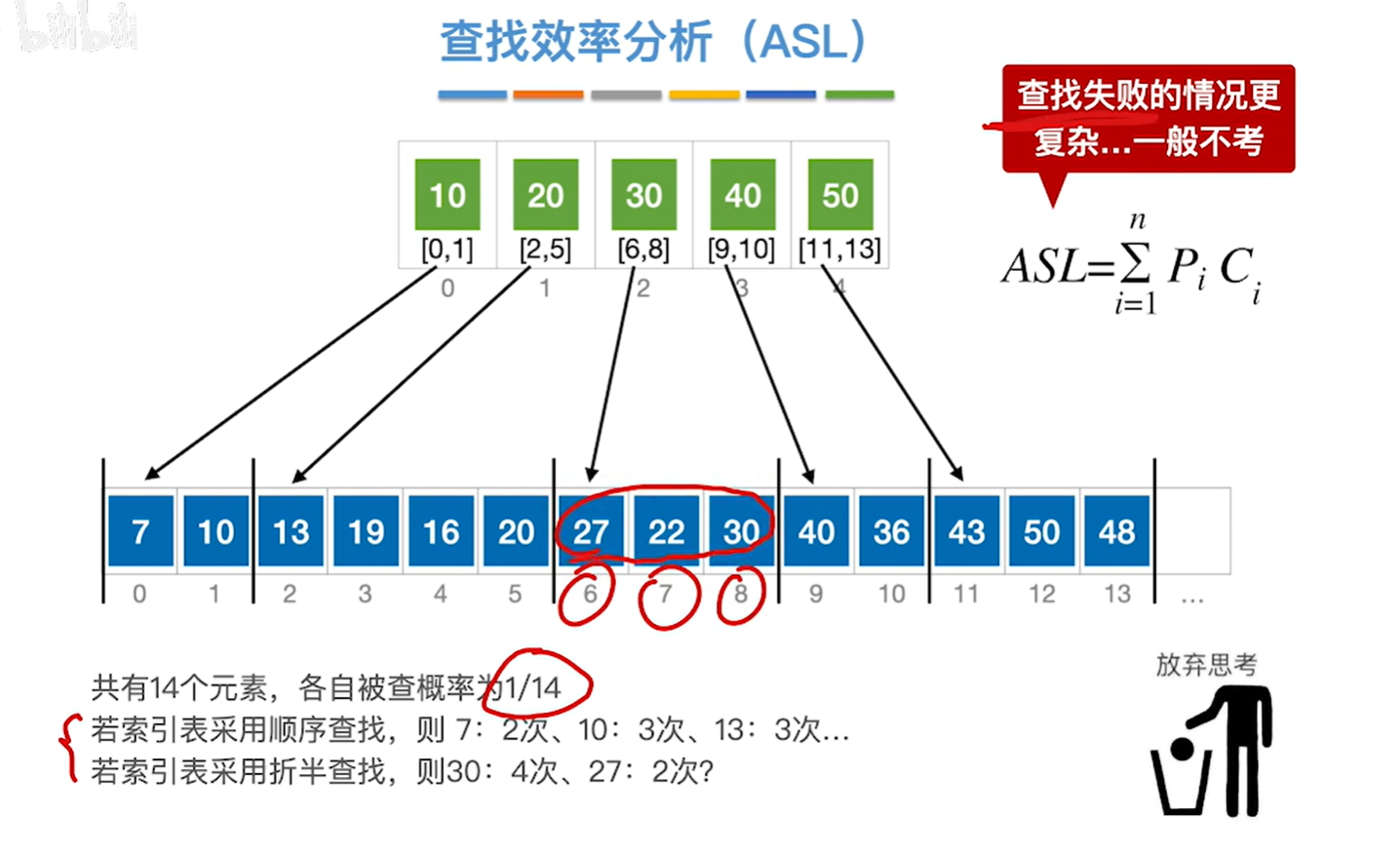 如果使用折半查找查找块的话,asl如上图所示,有个印象就行不是很重要