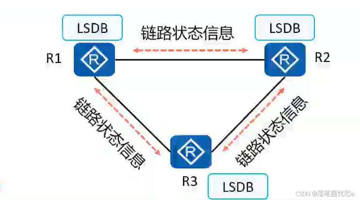 运行链路状态路由协议的路由器之间首先会建立邻居关系,然后彼此之间开始交互 LSA (Link stateAdvertisement,链路状态通告)。
