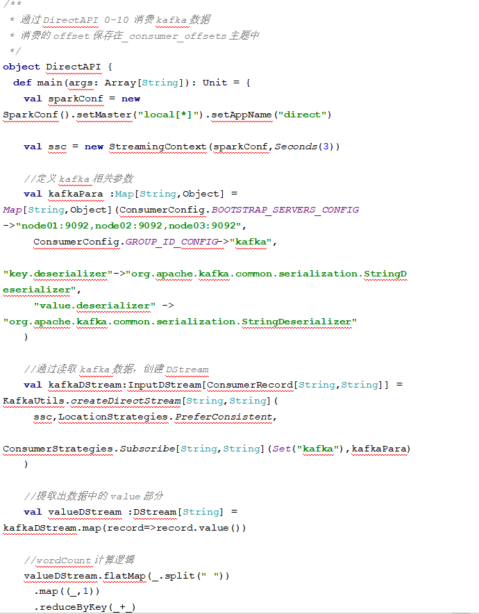 DirectAPI:是由计算的 Executor 来主动消费 Kafka 的数据,速度由自身控制。