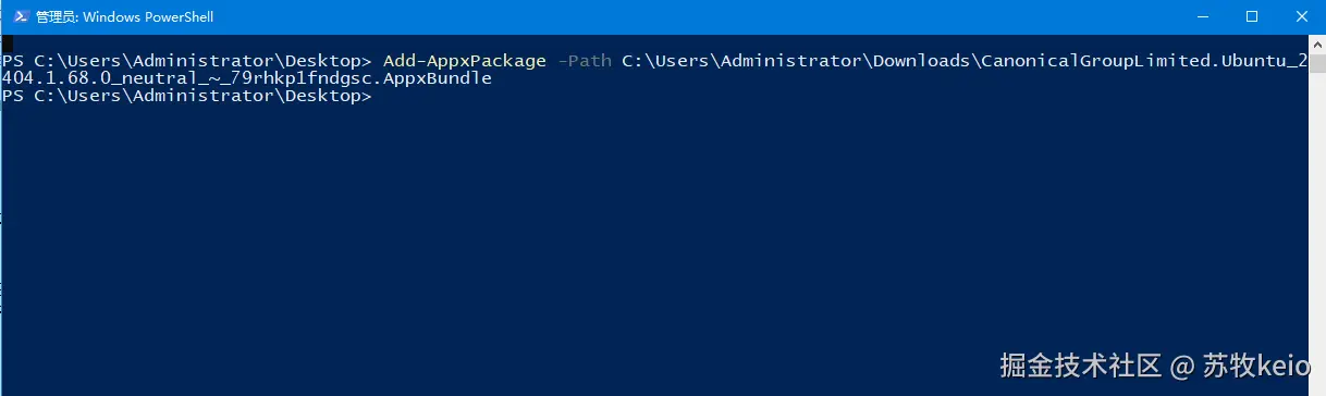 在Powershell中输入Add-AppxPackage -Path Ubuntu安装包路径