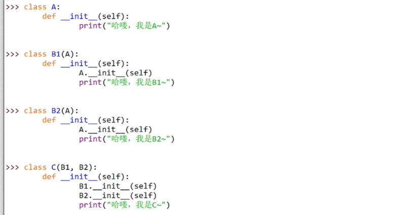 通过类名访问类里面的方法的做法,称为调用未绑定的父类方法,他有时候会产生钻石继承问题: