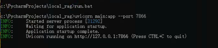 (11)为了简化每次打开cmd输入命令,我们打开local_rag目录,新建一个run.bat批处理文件,将运行命令保存到bat文件中,如图4-13所示。