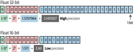 图12-15. 尝试用32位和16位浮点数表示π。注意当比特位数减半时精度会下降