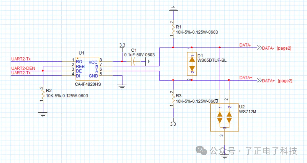 以上面这个RS-485电路为例,我们使用上面介绍的工具进行原理设计;