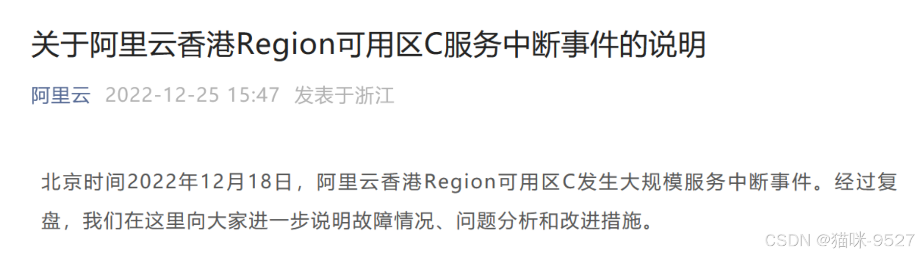 2022年阿里服务器故障: