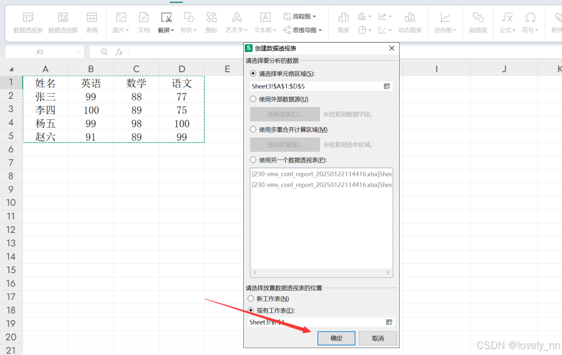 选择对用的数据区域范围: