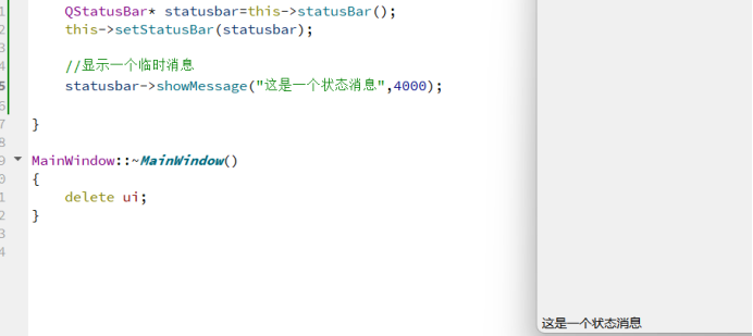 同样,在勾选了自动生成ui文件的情况下,默认就生成了一个statusbar,在代码进行使用时直接获取,如果没有才进行创建,避免内存泄漏