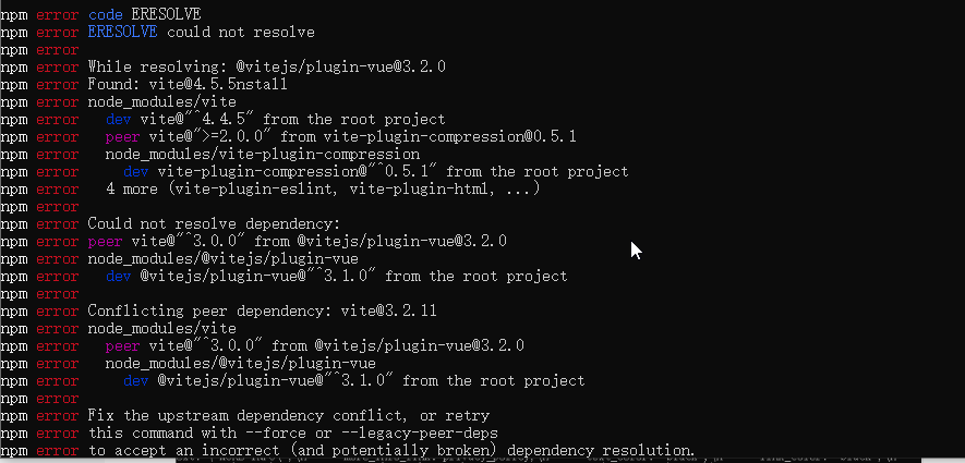 1.从git上拉了一个新vue项目npm install 报错如下