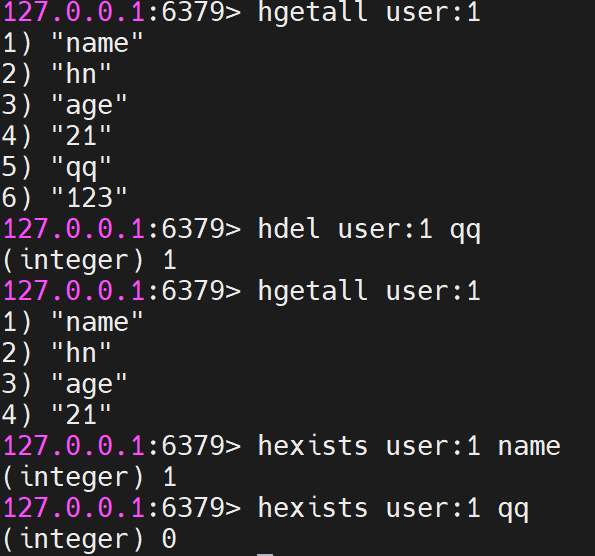 (6)hdel key field1 field2