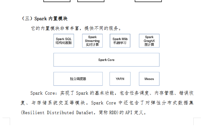 Spark Streaming:是Spark提供的对实时数据进行流式计算的组件。提供了用来操作数据流的API,并且与Spark Core中的 RDD API高度对应。