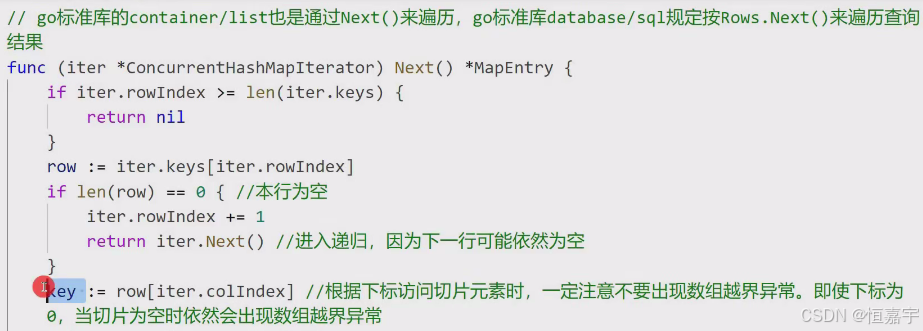 - next方法检查边界条件,通过递归处理空行情况,返回下一个key和value。