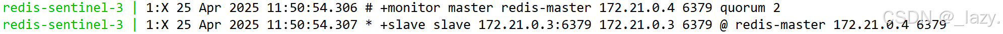 那么现在,我们就能通过docker-compose logs查看到哨兵节点确实是正在监测对应的节点。