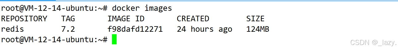 然后我们需要使用docker获取到redis的镜像 ,毕竟没有可执行程序我们也就没有办法启动进程了。对应的命令是docker pull redis:7.2 ,也可以是docker pull redis:5.0.9,5.0.9的版本较老但是非常稳定,7.2的版本是最新的稳定版,体验相对好一点,其实我们都感觉不出来所以随便选一个了。