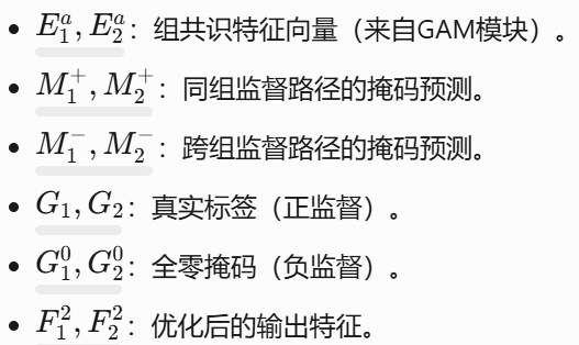 共识特征:E1a 和 E2a,来自组内协作模块(GAM)的组共识特征向量(形状 N×C)。