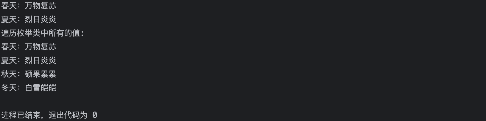 System.out.println("冬天:白雪皑皑");