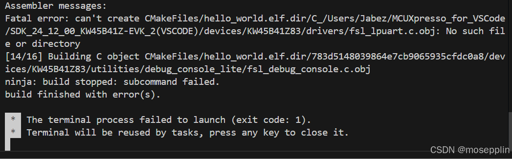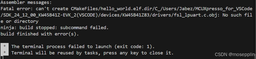 在VSCODE里编译NXP的KW35的SDK的例程,出现以下错误