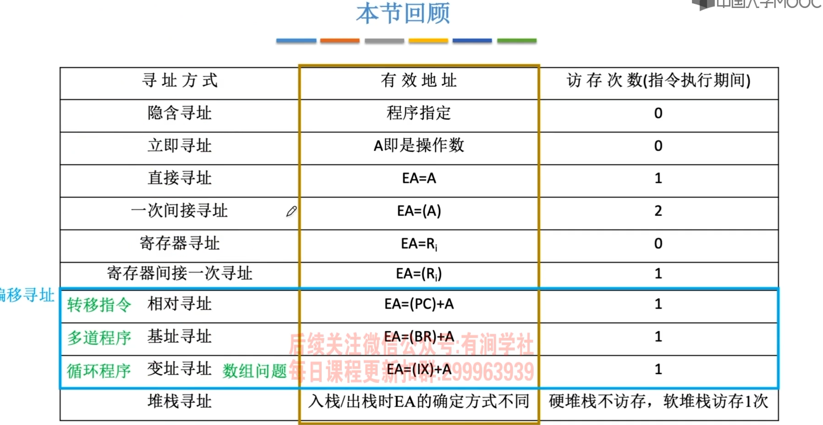 2.立即寻址:优点是指令在执行阶段不需要访问主存,指令执行时间短,缺点是A的位数限制了立即数的范围。