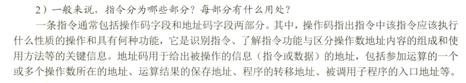 (1)一条指令通常包括操作码字段和地址码字段两部分。