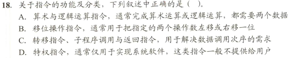 (3)因为主存一般是按照字节编址的,所以指令字长多为字节的整数倍。