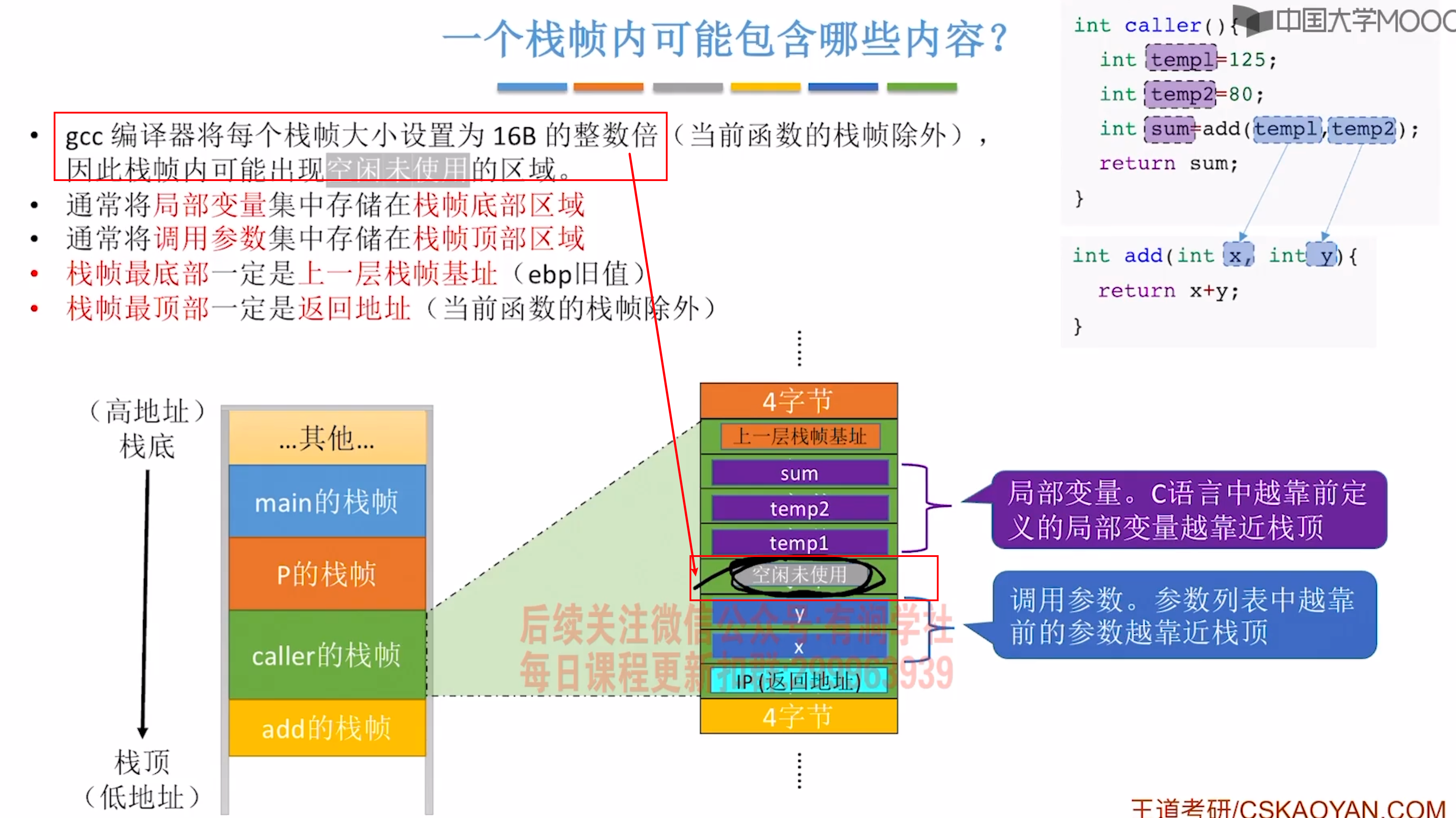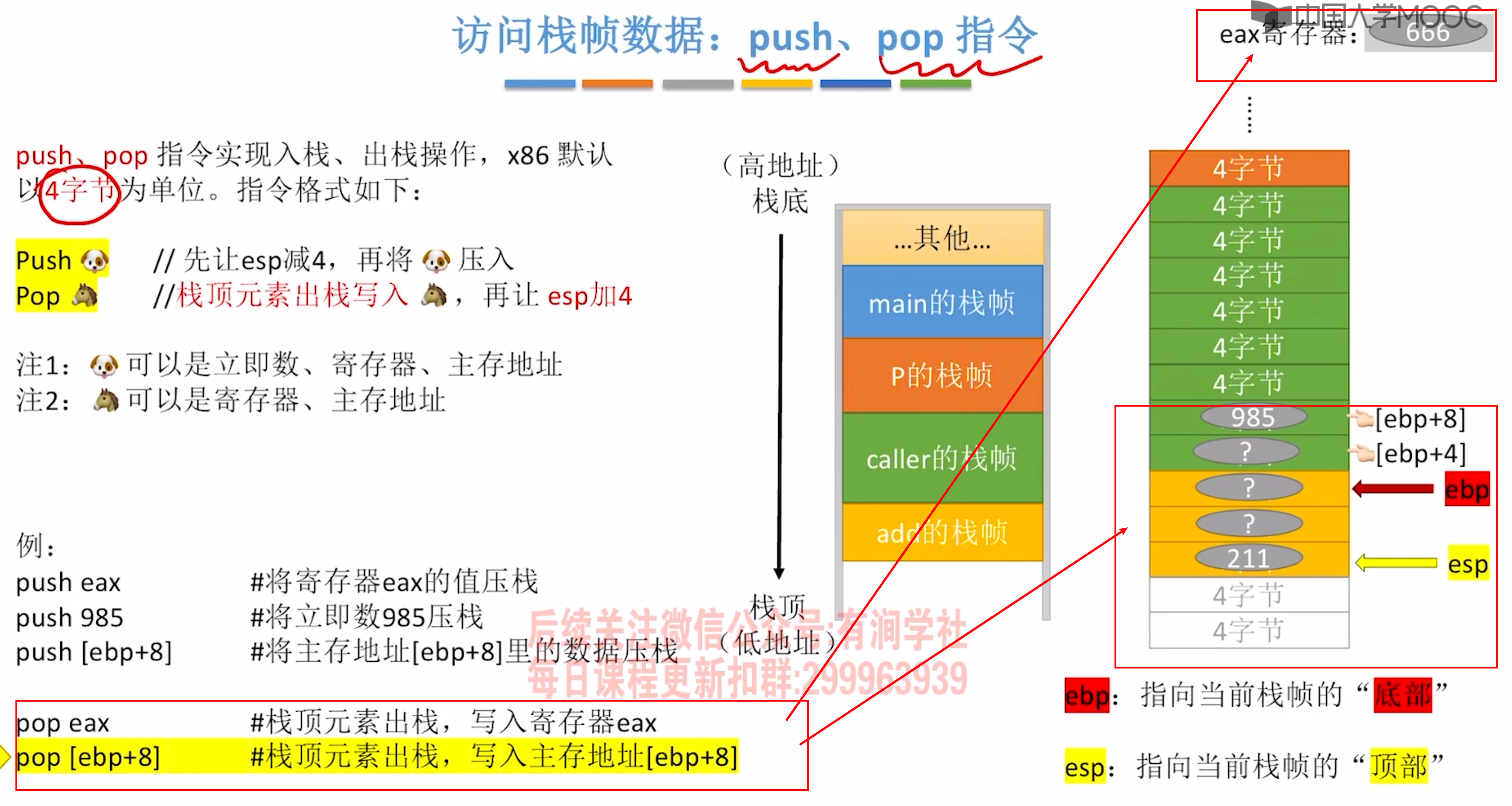 在一个栈帧内,ebp指向是不变的(其值为上一个栈帧的基址),esp始终指向栈帧的顶部