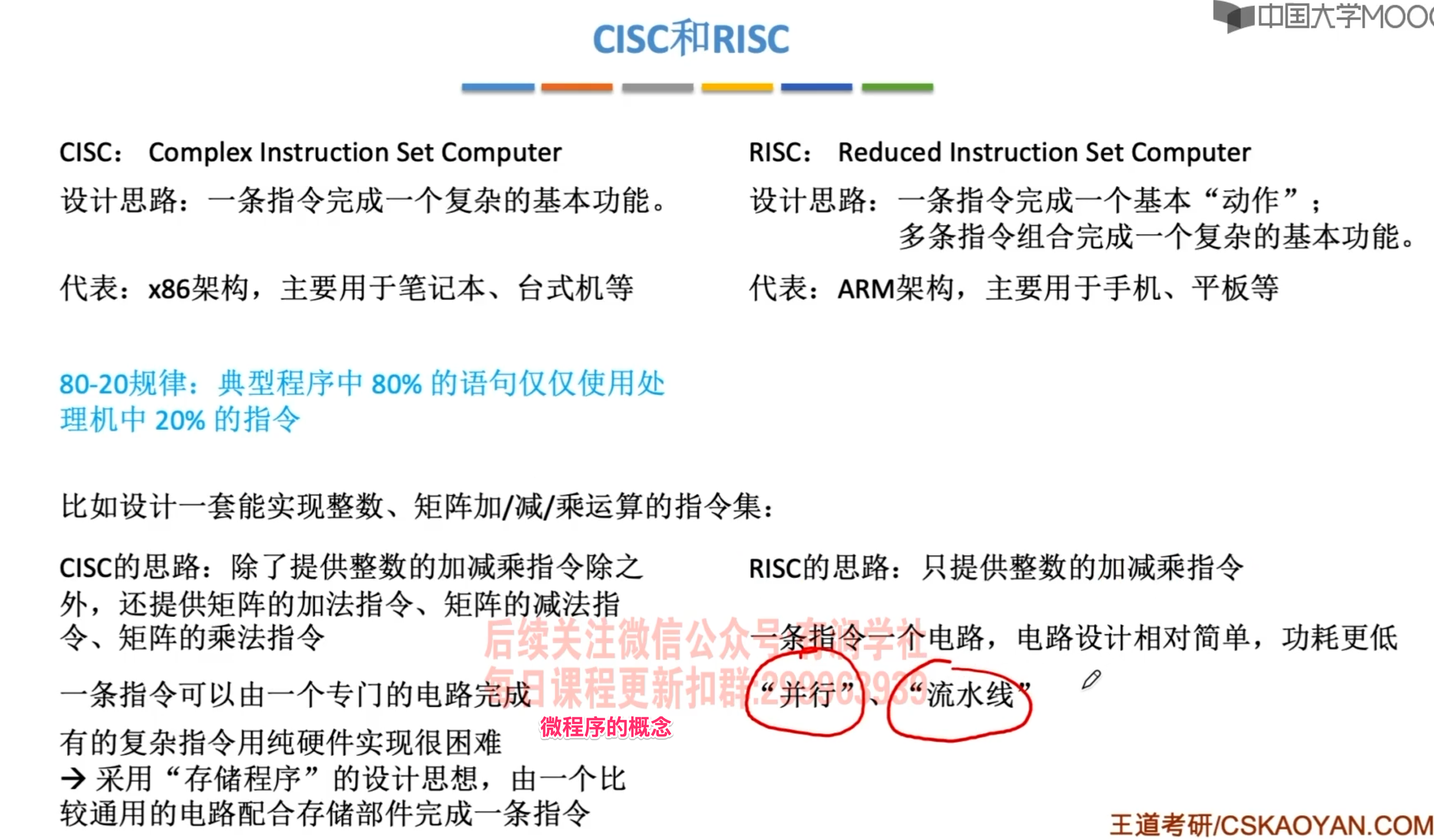C.RISC的主要目的是减少指令数,因此允许以增加每条指令的功能的方法来减少指令系统所包含的指令数 这里不是增加指令功能,而是通过简单指令组合实现复杂功能