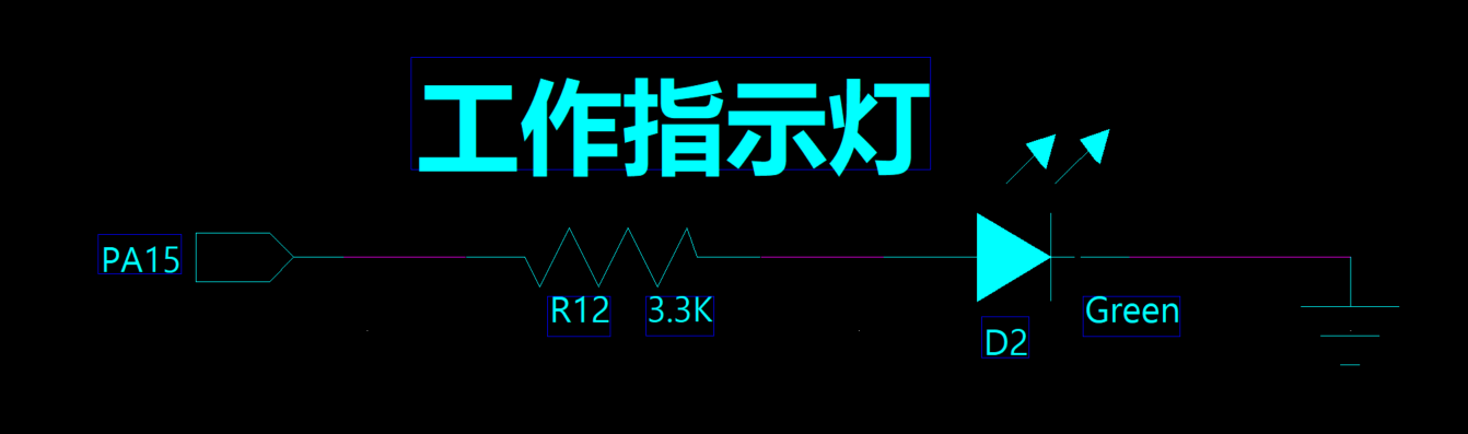 我们将led的正极接到电源即可。由于上电期间PA15的上拉电阻存在,LED两端等电位,led就不会意外闪烁了。软件初始化完成后,用低电平驱动即可。