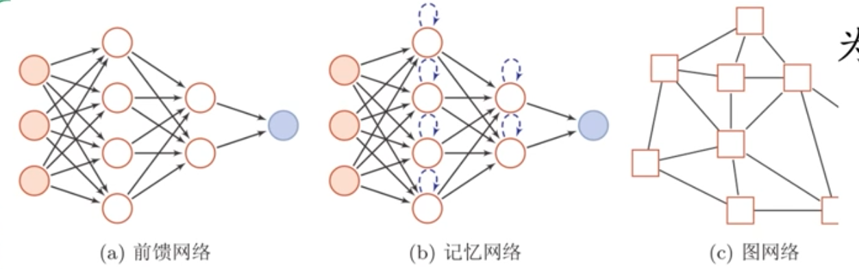 ②循环结构:信息传播可以是单向循环(如RNN)或双向交互(如玻尔兹曼机),结构上表现为有向循环图或无向图。
