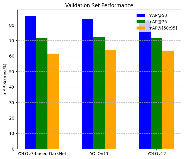 | YOLOv7 (DarkNet) | 88.2% | 75.6% | 65.5% |