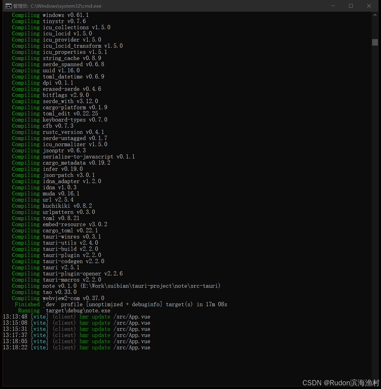 官网:Tauri 利用了已经存在于每一个用户系统的 webview。Tauri 应用中只包含了该应用专属的代码和资源文件,++不需要在每个应用中都打包一个浏览器引擎++,这意味着一个最小化的 Tauri 应用体积可能小于 600KB。 - rust下载安装太慢? Windows快速安装Rust_windows安装rust慢-CSDN博客