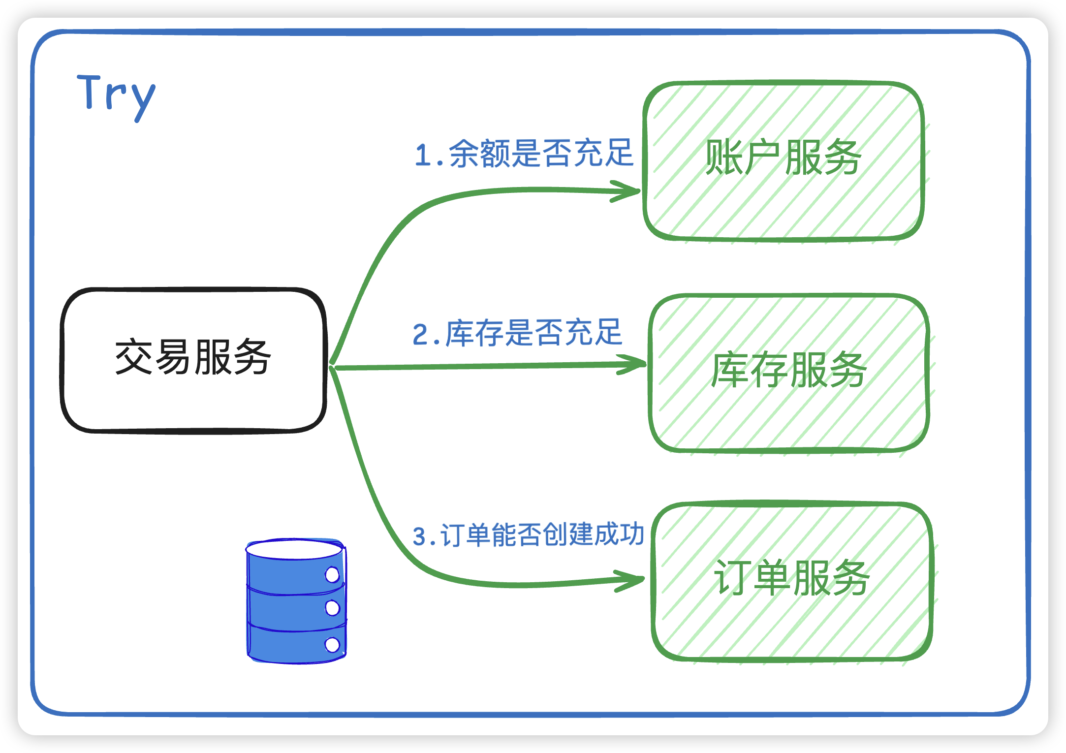 Try阶段完成业务的准备工作,Confirm阶段完成业务的提交,Cancel阶段完成事务的回滚。 基本原理如下图所示。