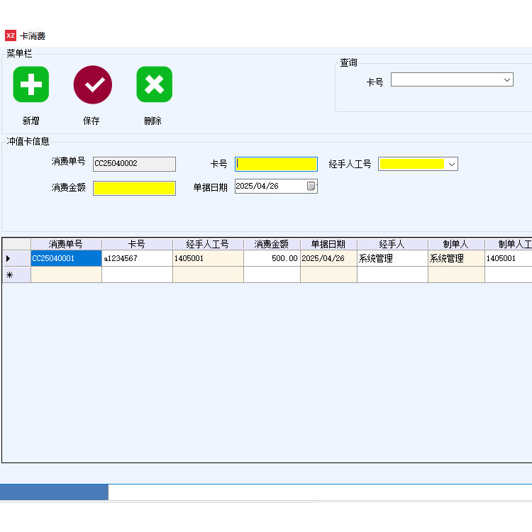 本软件是给克什克腾旗某公司开发的一个简易的超市充值卡程序
