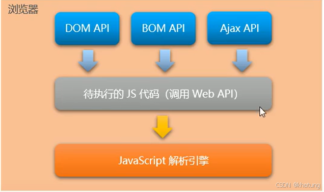 原因:每个浏览器都内置了DOM、BOM这样的API函数